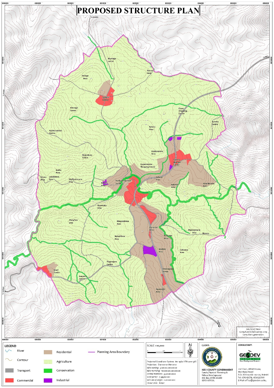More specifically, the project objectives were: to define a long-term vision for the town; to form a basis for future local development planning; to promote optimal use of land by providing a land use framework; to enhance economic competitiveness of the town by providing conducive pre-conditions for investment; to ensure a safe, convenient transportation system that integrates with the various activity areas; and to boost provision of quality housing in Ogembo Town. Others were to provide a framework for provision of physical and social infrastructure; To provide a framework for coordination and implementation of projects and programmes; and to enhance participatory governance of the town.